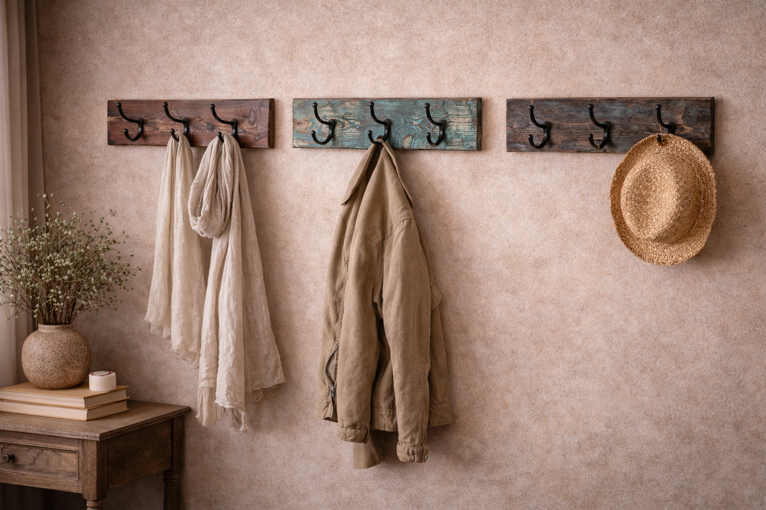 The hanger is defined by its deep, high-relief floral carvings and scrolling “Patti” (leaf) motifs that wrap around the sturdy mounting base and curved hook. The natural, raw finish highlights the authentic, artisanal soul behind every hand-chiseled mark, showcasing the beautiful grain and inherent strength of the wood. Its robust, balanced form provides a sense of permanent elegance, while the smooth, polished edges ensure your finest textiles are held with gentle care.