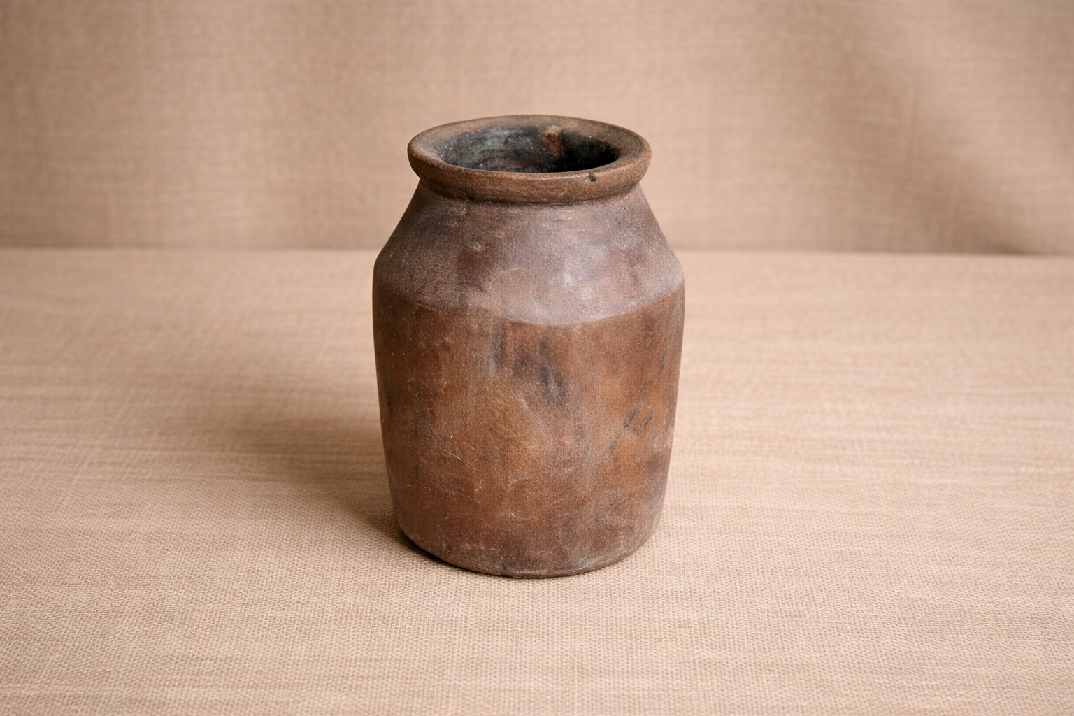 The pot is defined by its robust, single-block construction and architectural lines, notably visible in the tapered neck and the sturdy, integrated base. Its balanced proportions and 26 cm diameter provide a sense of grounded permanence, while the natural durability of the timber ensures it serves as a long-lasting artifact for the home. Whether used to hold dried botanical arrangements or as a pure decorative element, this piece seamlessly integrates the soul of heritage design with modern functional living.