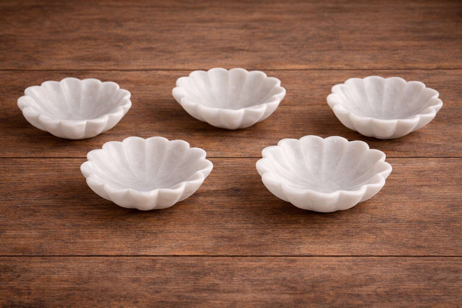 This exquisite miniature vessel is a masterwork of delicate stone carving, meticulously shaped from premium white marble into a graceful blossoming form. Spanning a petite 5 cm in diameter, its scalloped floral silhouette is inspired by the intricate petal motifs of traditional heritage design. It serves as a sophisticated solution for holding small keepsakes and jewelry, or as a refined accent piece for ritual offerings and vanity displays.