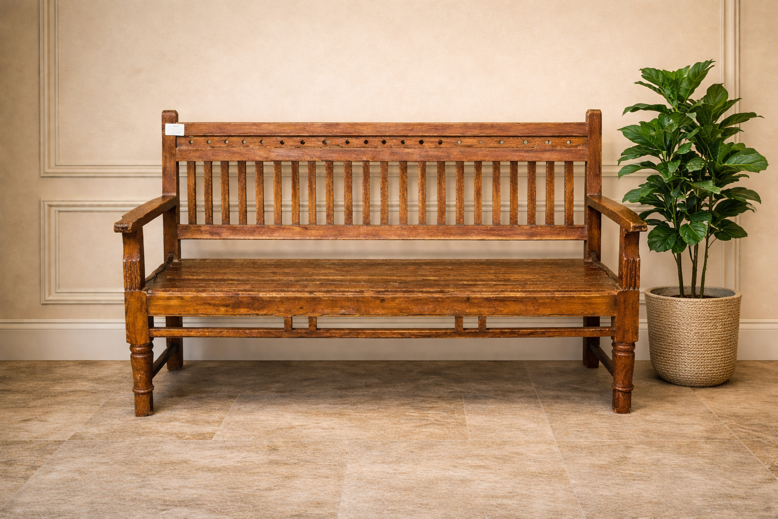 Vintage Colonial-Style Indian Wooden Bench – DD004